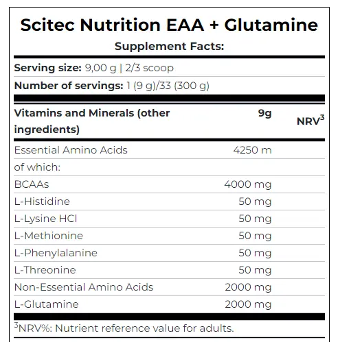 Состав Scitec Nutrition EAA + Glutamine