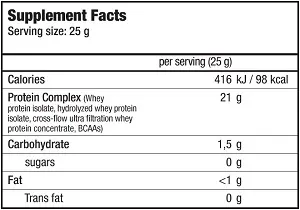 Iso Whey ZERO — це білкова добавка від європейської фірми BioTech, створена повністю на основі ізоляту сироваткового білка. Це означає, що вибираючи цей протеїн, ви можете бути на 100% впевнені в його високій біологічній доступності та швидкості засвоєння. Це буде вам гарантувати його високий рівень очищення, а отже, і підвищену концентрацію білка. Зазвичай в таких продуктах ми можемо знайти 70-75 г білка на 100 г продукту, а в Iso Whey ZERO цей показник був піднятий до 84 г.